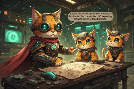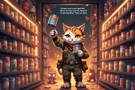 核废土余波 文本:末日废土中的猫咪,已变异成双眼发光的凶猛生物!情景: