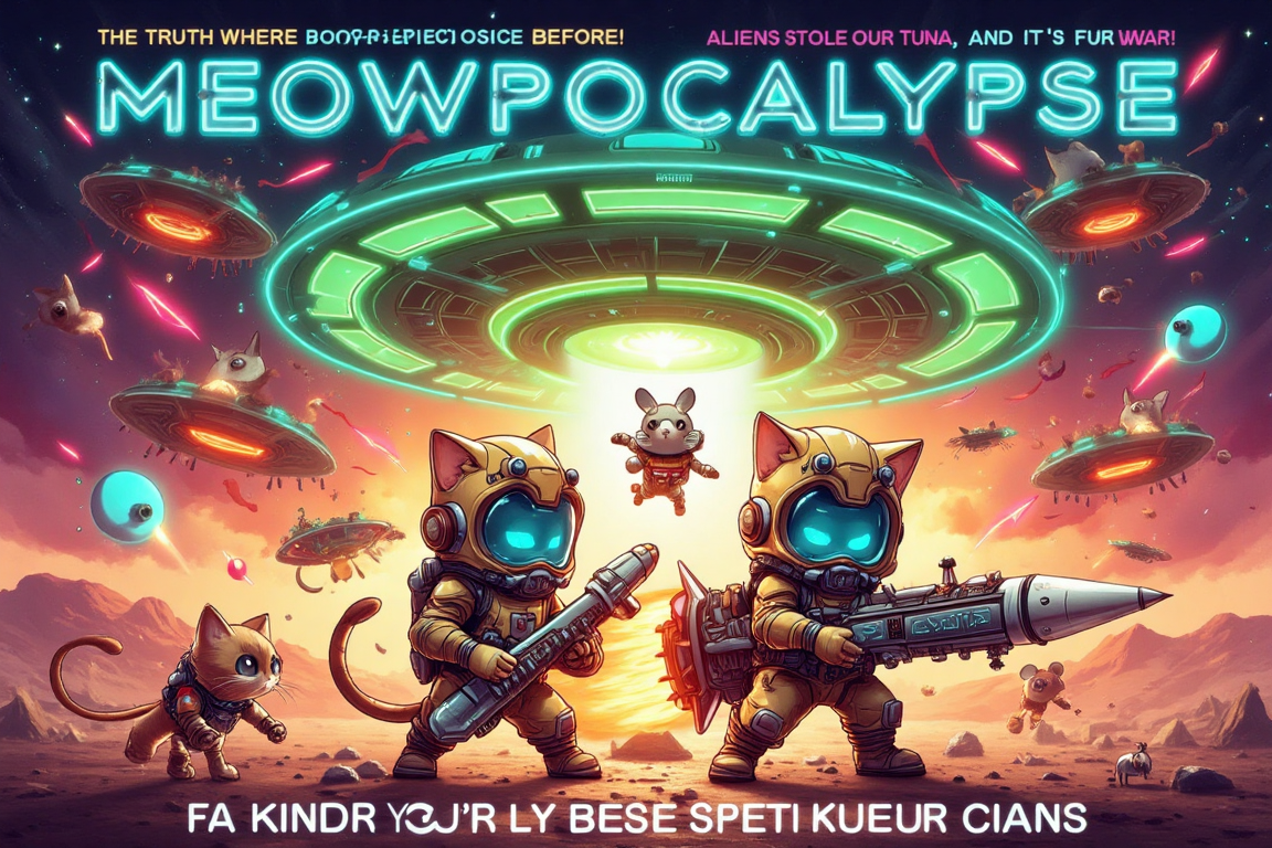 外星入侵 文本:来自喵星的入侵!外星猫携先进的科技和激光胡须降临地球!情景:
