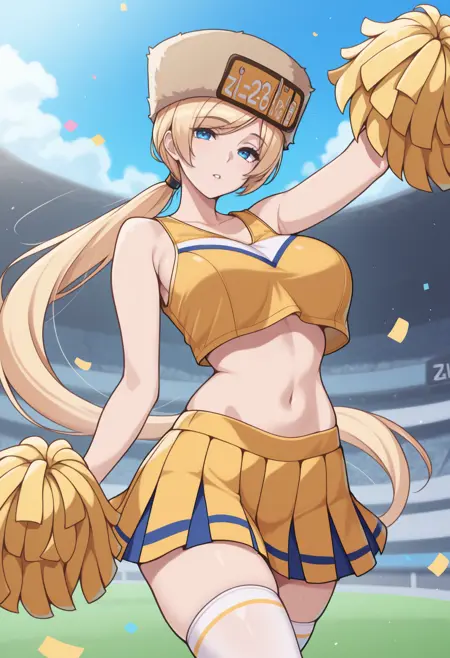 Trigger + Appearance: strivemilrg, long hair, blonde hair, blue eyes