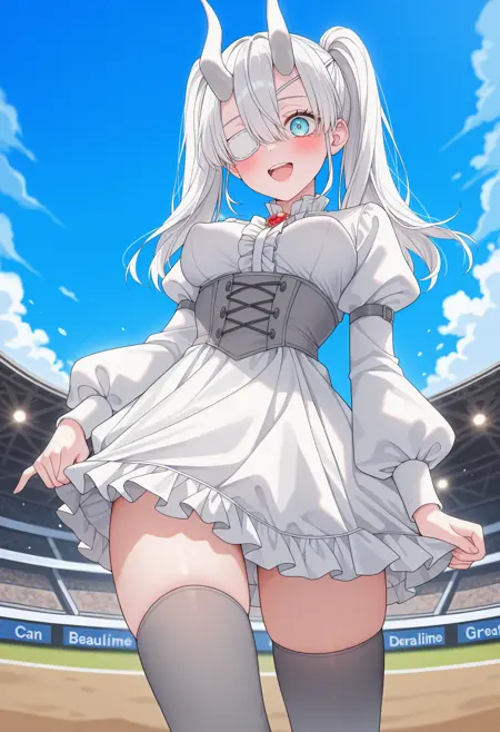 KJOlime, 흰 머리, 파란 눈, 뿔, 눈 사이의 머리카락, 긴 머리, 쌍머리,
