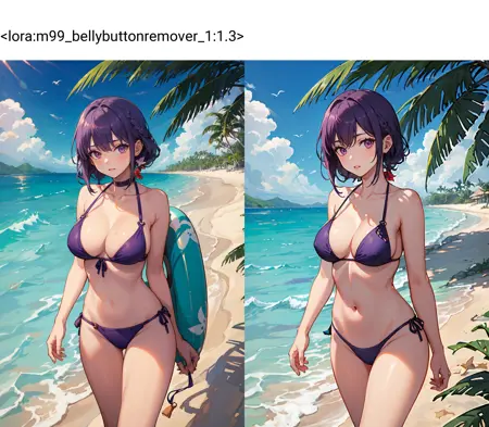 - 그 이미지의 수정 버전(이 경우 배꼽을 inpainting으로 제거함)에 대해 두 번째 LoRA를 과도하게 학습시킴