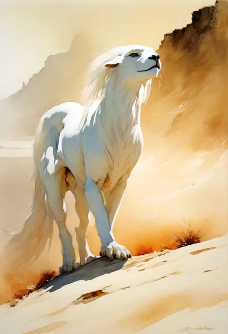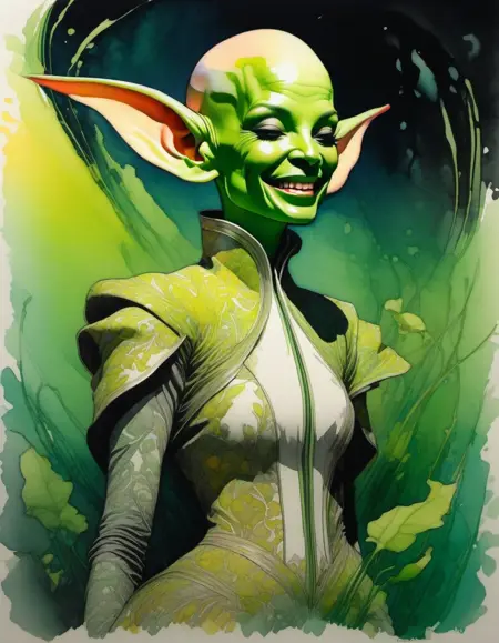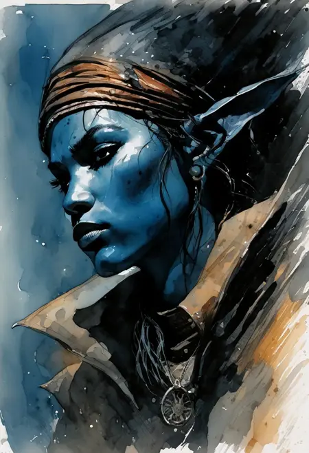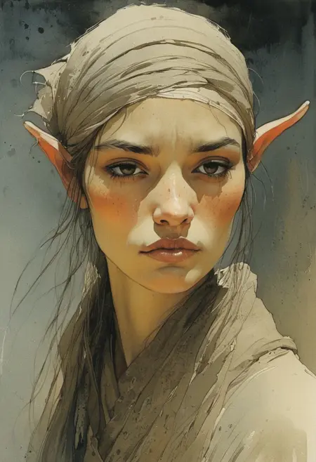잉크 일러스트레이션, 라인 클레어, 수채화 시각 효과와 판타지가 융합된 것.