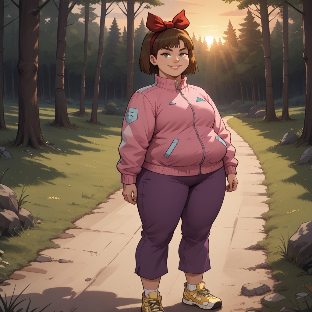 brown hair, hair bow, lips, pink jacket, dark purple pants, socks, yellow sneakers, plump, breasts, total drama, Staci_(Total_Drama), tdroti, cute