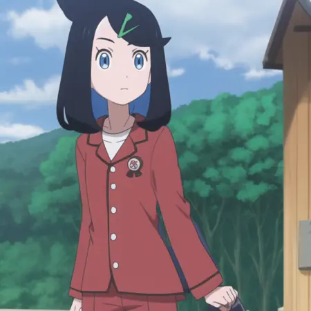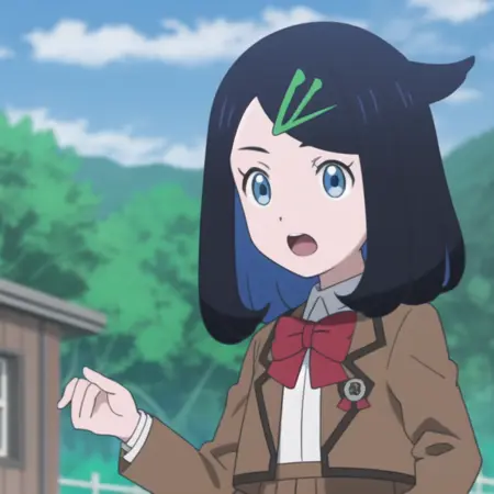 Trigger Word: ph-liko, hairclip, multicolored hair, medium hair, brown school uniform, jacket shirt shorts