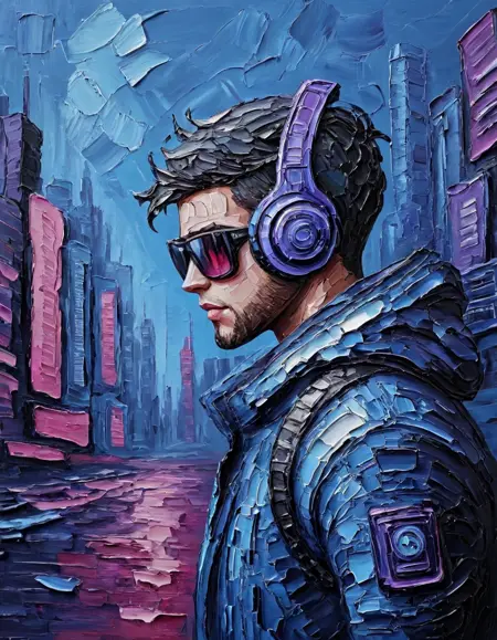 厚い筆致やパレットナイフ風のスタイルを特徴とする絵画スタイル。カラーパレットはしばしば青系の背景に、手前に紫やピンクが使われる。ただし、これはプロンプトによって異なる場合がある。