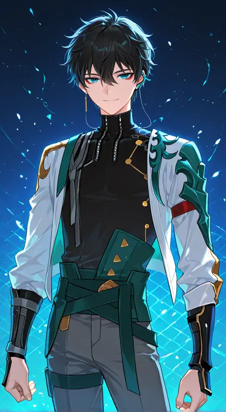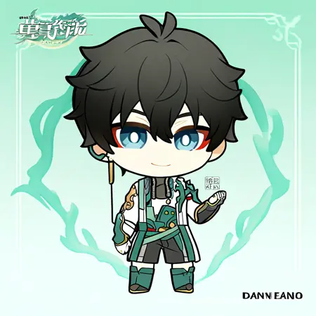 触发词:丹恒、黑发、短发、头发遮住眼睛、蓝眼睛、珠宝、耳环