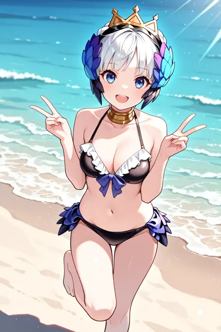 OdinSphereGwendolyn, 1girl, white hair, short hair, blue eyes, hair ornament
