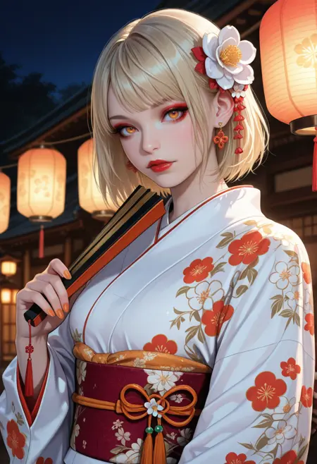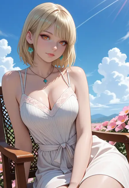 RE4Ashley, 1girl, blonde hair, medium hair, amber eyes, bangs