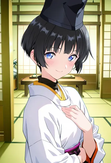 添加了传统的日本帽子——立乌帽。它有时看起来像是“粘”在头上而不是“贴合”头部,但除此之外效果不错。