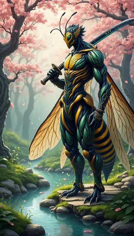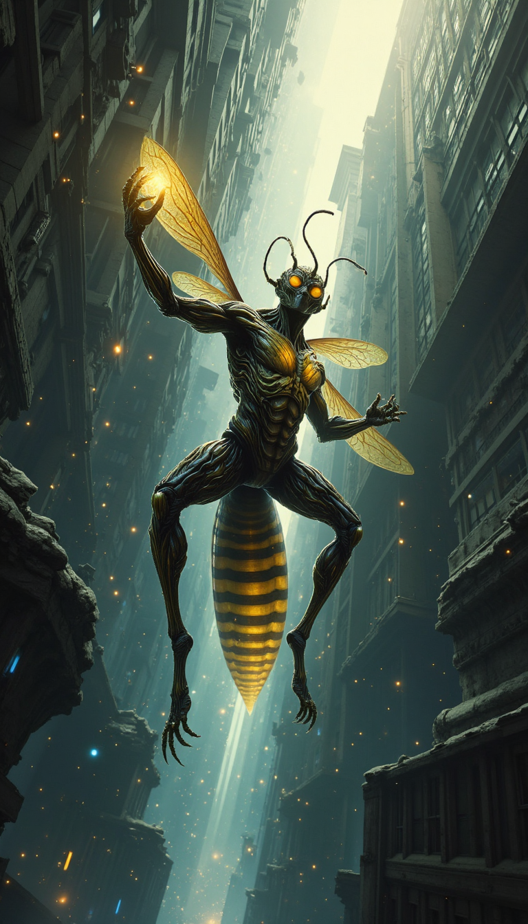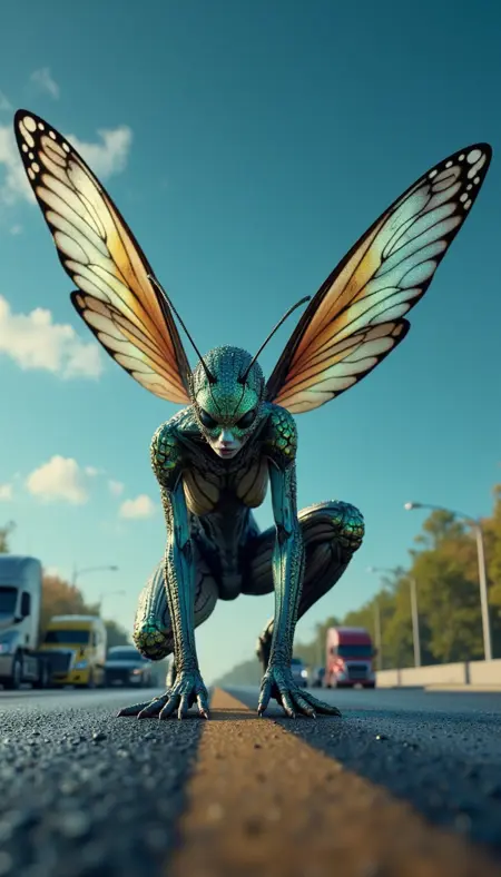 lora:InsectHybridFLUX:0.9An image of a human and insect hybrid. The part of the hybrid that is insectnoid is of a {bee|butterfly|ladybug|wasp|moth|bug|praying mantis origin. The hybrid is a {man|woman|}.