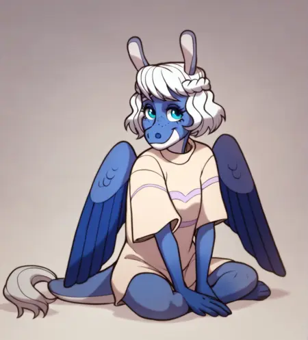 强化标签:白发,蓝皮肤,蓝眼,羽翼,尾巴**