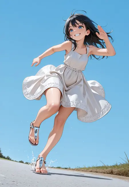 Something a little more light and summery. V2 introduces more illustration-type images into the dataset, which should fix the 3D look problem. It also changes the name and the trigger tag, since I've been informed that "T-bar sandals" are something different (in fact, they're pretty much what happens when you combine this with mary janes).