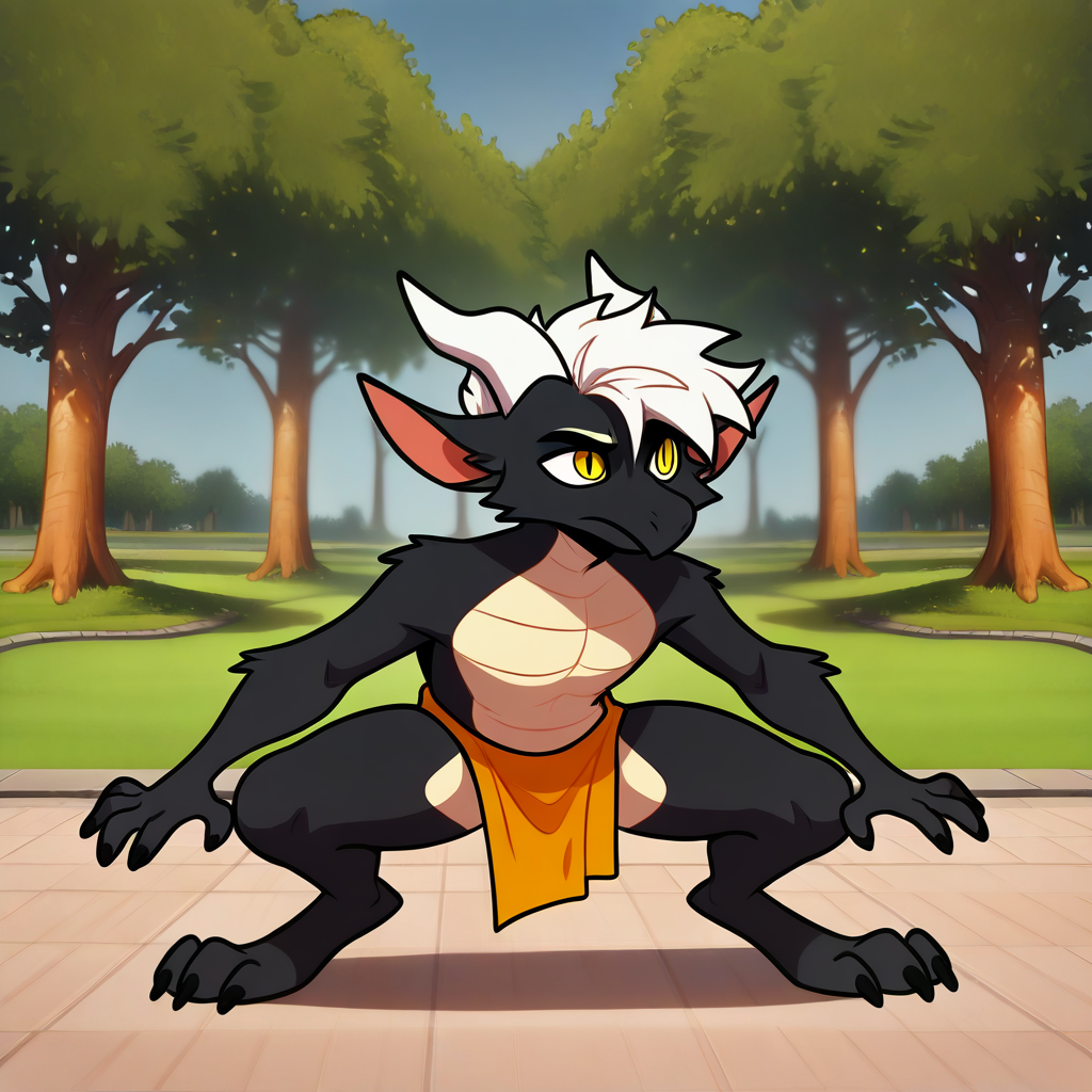 mikus-concept, caveman, defensive pose standing alert, full body, arms shoulder width apart, slightly crouched, leaning forward