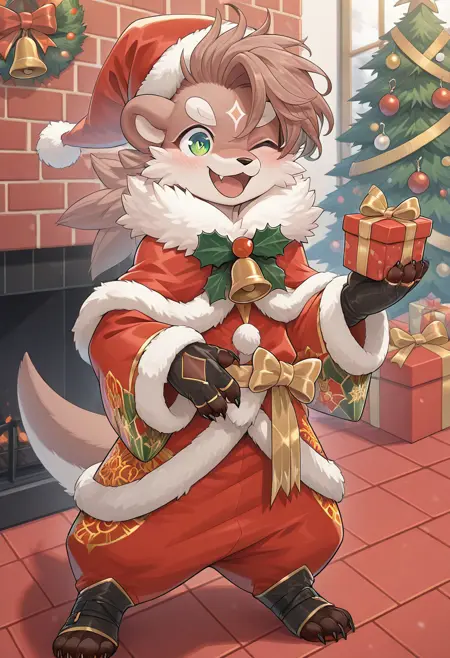 🖌️ 推荐: ottertas,1boy,furry male,brown fur,green eyes,thick eyebrows,white forehead mark,neck fur,tail,