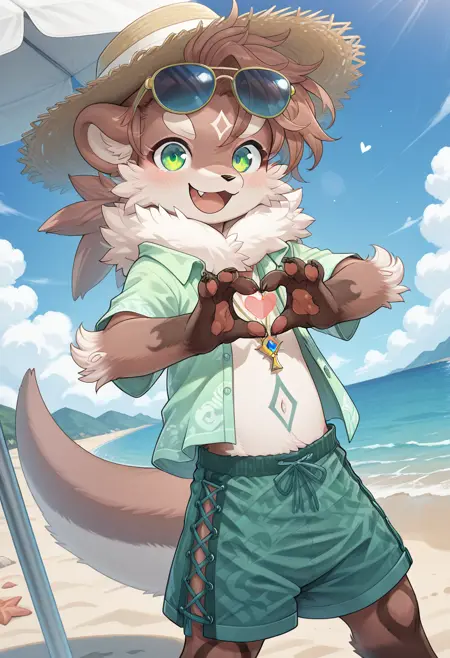 🖌️ Recommed : ottertas,1boy,furry male,brown fur,green eyes,thick eyebrows,white forehead mark,neck fur,tail,