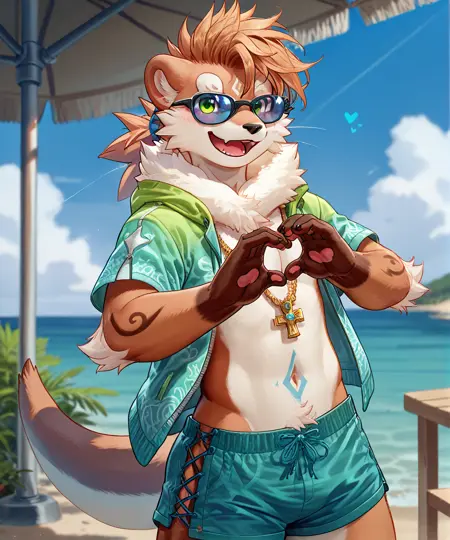 🖌️ Recommed : ottertas,1boy,furry male,brown fur,green eyes,thick eyebrows,white forehead mark,neck fur,tail,
