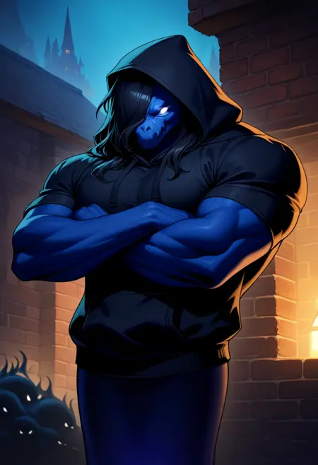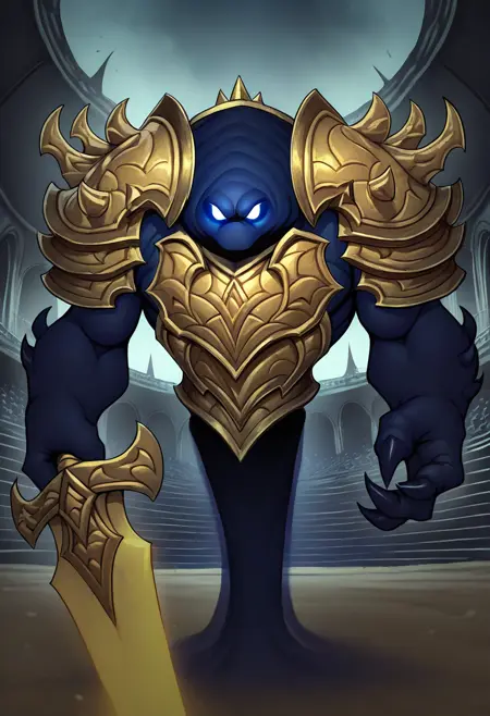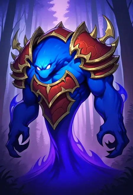 비드워크 레드 구성용 주요 프롬프트: NSwoidvalkerWoW, 몬스터, 진한 파란색 피부, 흰 눈, 색상이 있는 피부, 빛나는 눈, 흰 눈, 입 없음, 근육질, 유령 꼬리, 다리 없음, 발톱, 보라색 빛, 빨간 어깨 갑옷, 빨간 흉갑, 어깨 스파이크