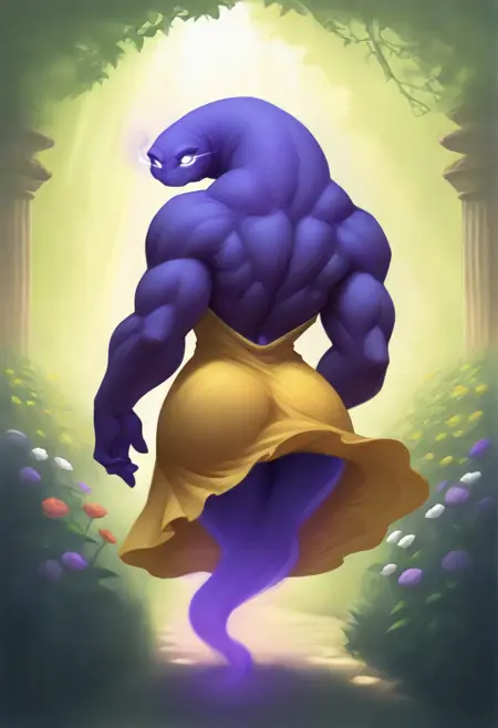 비드워커 구성용 주요 프롬프트: NSwoidvalkerWoW, 몬스터, 보라색 피부, 흰 눈, 색상이 있는 피부, 빛나는 눈, 흰 눈, 근육질, 유령 꼬리, 다리 없음, 발톱, 보라색 손목 보호대