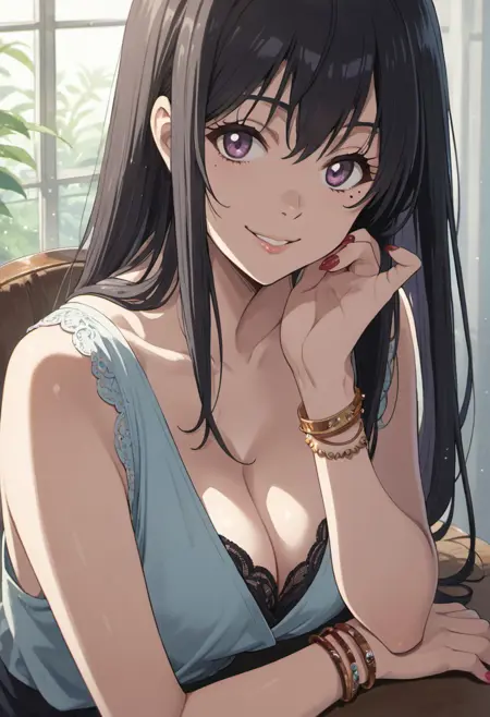 Trigger Words: suga natsumi, black hair, purple eyes, long hair