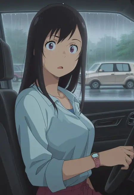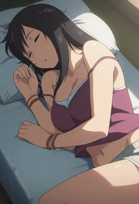 트리거 단어: suga natsumi, 검은 머리, 보라색 눈, 긴 머리