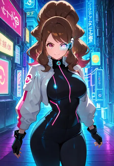포켓몬 콜로세움 3가 사이버펑크 배경을 가지고 있으며, 각 게임의 모든 포켓몬 주인공들이 등장한다고 상상해보세요. 이 세계에서 힐다는 고기술 스카우터를 사용해 그림자 포켓몬을 감지하고, 강력한 럭 볼트를 활용해 그들을 빛으로 되돌려옵니다.
