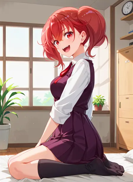 sakuraba_koma, 红发, 红眼, 双马尾, 中长发, 中等胸部