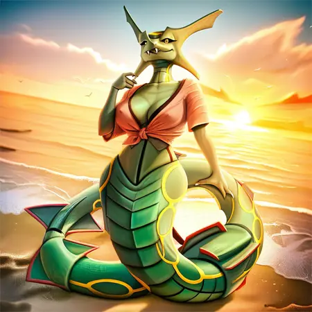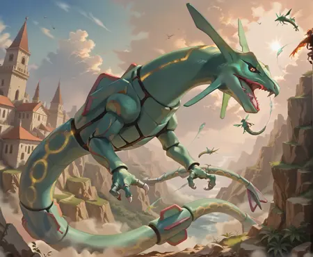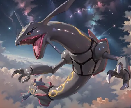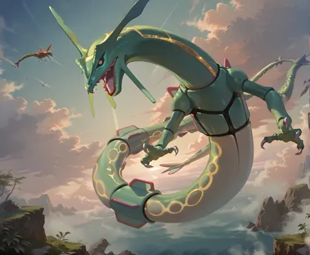 顾名思义。虽然数据集明显较小,且拟人内容不如我期望的那么多,但它的准确性较高,能生成不错的效果。请注意,能量触须有时容易在图像中丢失。此版本的标签与普通形态一样,为:“MegaRayDX”、“Mega Rayquaza”和“Shiny Mega Rayquaza”。