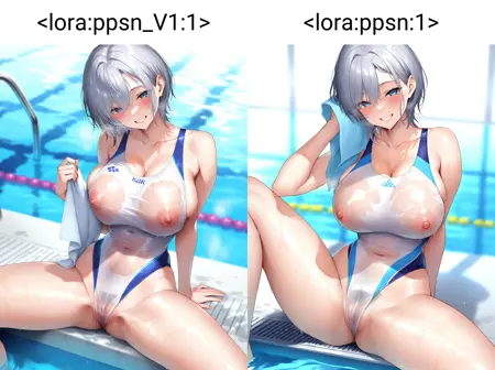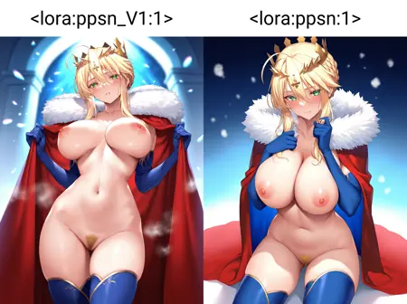 与新训练的 LoRA 模块合并,相比 ppsn 在细节和身材比例上更出色。