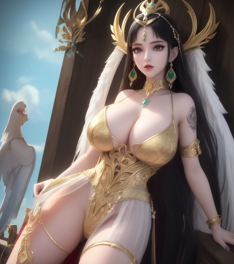推奨トークン:ultra realistic 8k cg, picture-perfect face, flawless, clean, masterpiece, professional artwork, famous artwork, cinematic lighting, cinematic bloom, perfect face, beautiful face, beautiful eyes, fantasy, dreamlike, unreal, science fiction, huge breasts, beautiful clothes, lace, lace trim, lace-trimmed legwear, absurdly long hair, very long hair, (rich:1.4), prestige, luxury, jewelry, diamond, gold, pearl, gem, sapphire, ruby, emerald, intricate detail, delicate pattern, charming, alluring, seductive, erotic, enchanting, hair ornament, necklace, earrings, bracelet, armlet,