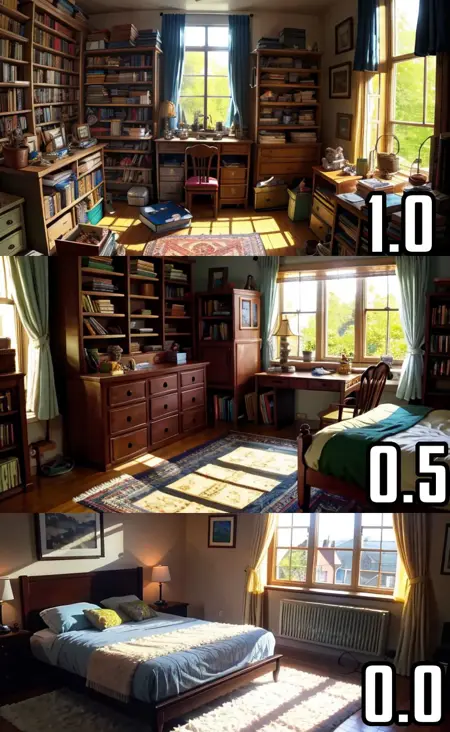 Clutter-Home: Just place the trigger work in your positive prompt ranging from strength 0.1 to 1.5. Mostly domestic clutter you'd find in a home. If you see too many of an object you don't need, be sure to add that to the negative prompt to have less of it.