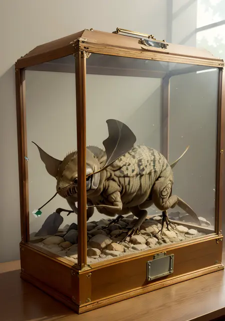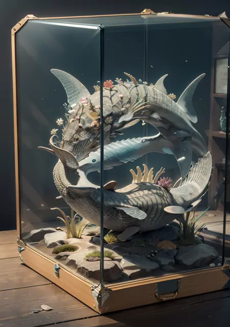 (沼地)、(KnollingCaseQuironスタイル)、ガラスケース、ディスプレイケース、(KnollingCase:1.4)、 lora:quiron_KnollingCase_v1_lora:0.77