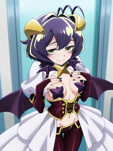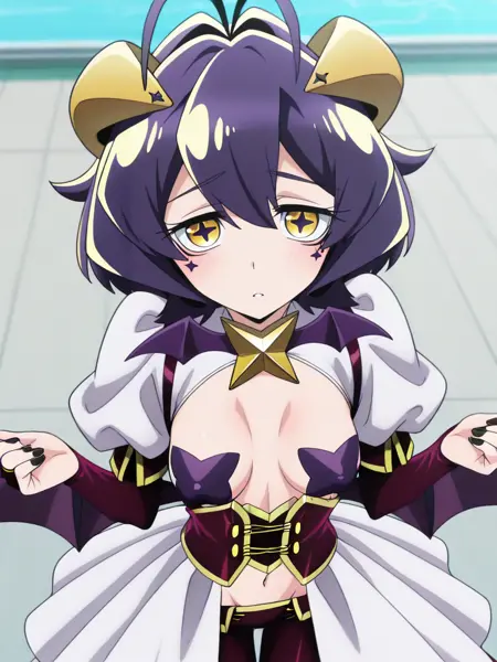 | 학습된 단어 | utena, bangs,short hair, purple hair,antenna hair, yellow eyes복사됨! utenaschool,school uniform,serafuku,green sailor collar, yellow neckerchief, white long sleeves,green pleated skirt, black pantyhose,복사됨! magiaBaiserdress,yellow demon horns,star \(symbol\), symbol-shaped pupils, puffy sleeves,shrug \(clothing\), star pasties, breasts, cleavage,corset,bat wings,purple elbow gloves, purple bridal gauntlets, midriff,navel,corset, white showgirl skirt,purple lowleg pants,black nails,복사됨! |