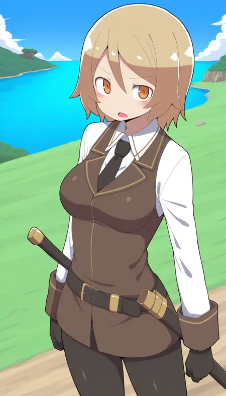 Moka_margaret, 1girl, 短发, 金发, 棕发, 橙色眼睛, 乳房,
