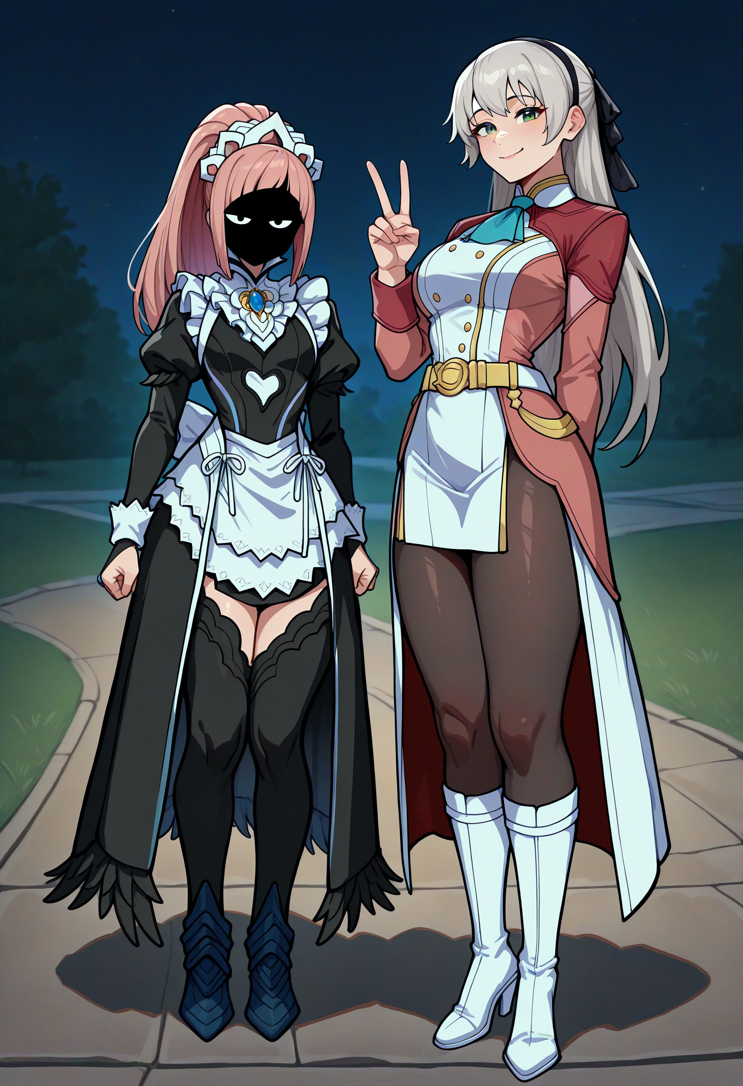full body, standing, outdoors, shaded face, shadow, night, looking at viewer