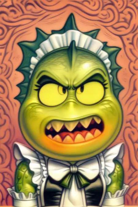 - 牙や口元の描写が不自然になることが多いです。複数の牙が表示されることがよくあります。その部分をインペイントするか、ランダムに再生成してみてください。
