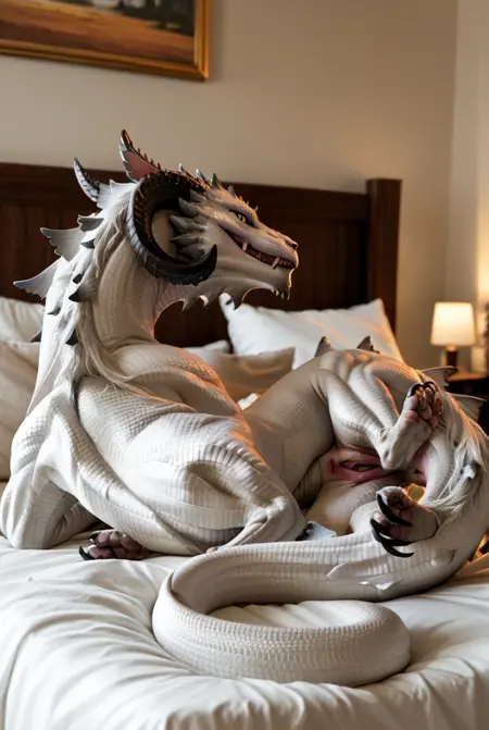 强化特征:拟人/兽形龙、白色鳞片、四翼/翅膀、角