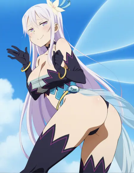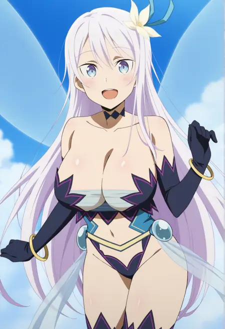 fdreona, 매우 긴 머리, 큰 가슴, 요정, 머리 장식, 머리 꽃, 노출된 옷, 초커, 흉선, 벌어진 어깨, 팔찌, 팔꿈치 장갑, 검은 허벅지 스타킹, 요정 날개, 발가락이 없는 양말,