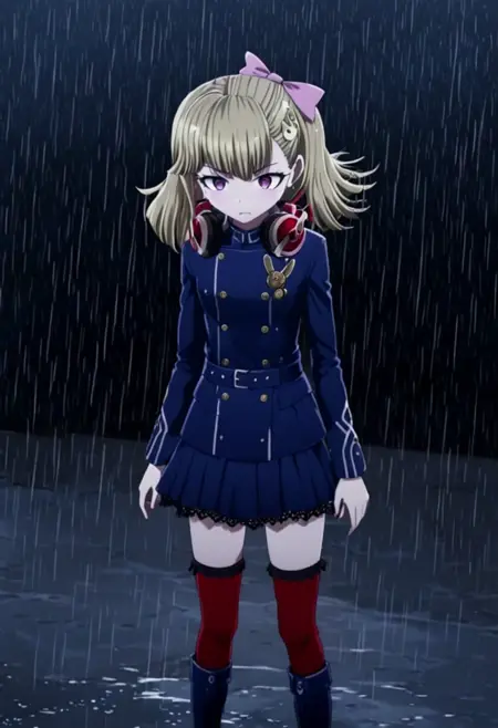 Pucciのデザインは、小松崎ルイが描いたもう一人のキャラクター——七海千秋——と多くの共通点を持っています。そのため、プロンプト内にこのLoRAとSDXL版のChiaki Nanami LoRAを約0.3の強度で併用すると、Pucciの学習データにない要素を補完するのに役立ちます。完璧な解決策ではありません。特にPucciのウサギの髪留めとChiakiのギャラガの髪留めが衝突し、白い塊のような髪留めになることが多いです。それでも、十分に有用であると感じたため、紹介します。以下のように使用できます: "lora:Pucci_Lavmin_SDXL:1,lora:Chiaki_Nanami_SDXL:0.3, This is an anime screencap from Danganronpa 3." Chiaki Nanami LoRAはリソースセクションでリンクされています。
