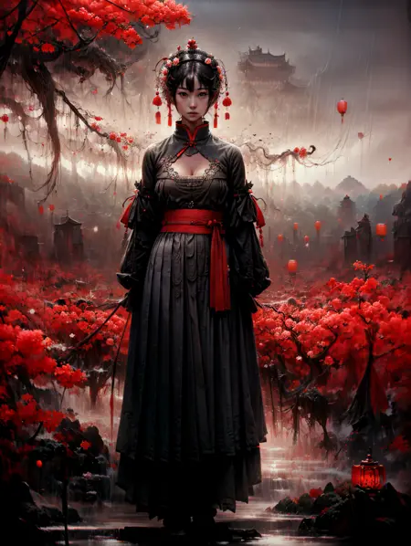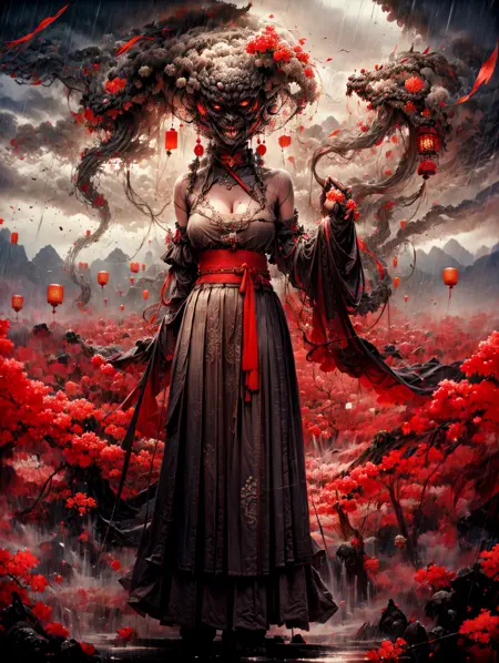 中国風のモンスター风格で、シーンの雰囲気に適しています。推奨値は0.7。人物だけの場合は、非常に邪悪で混沌としているが、非常に衝撃的な映像になります。