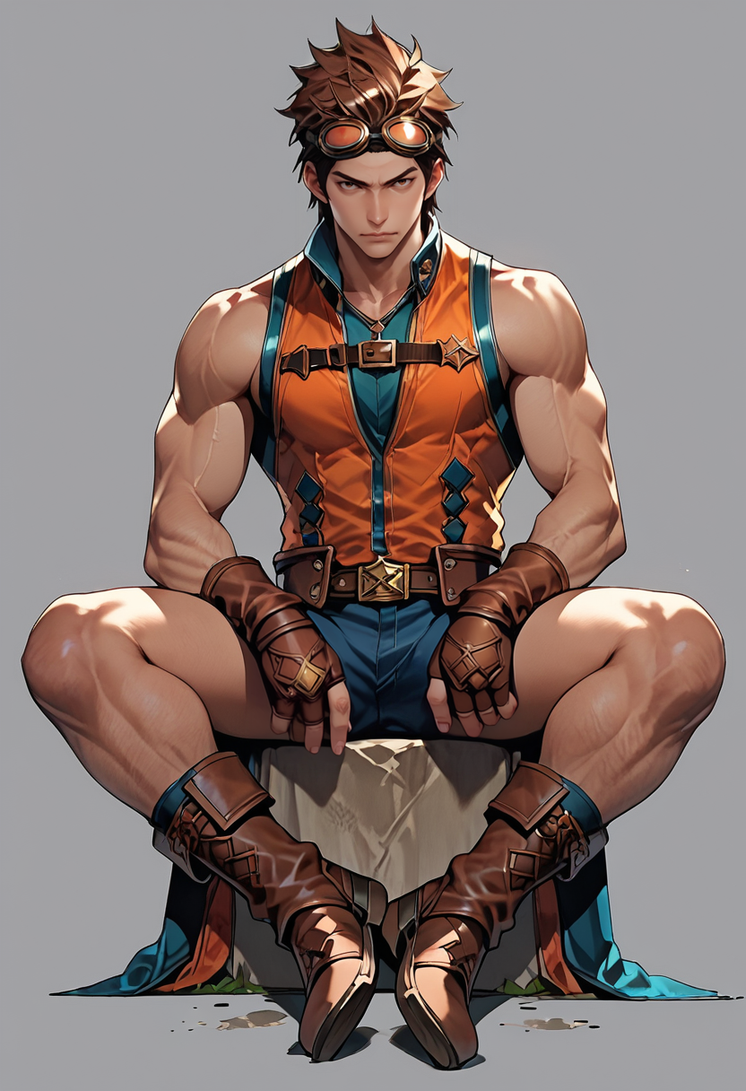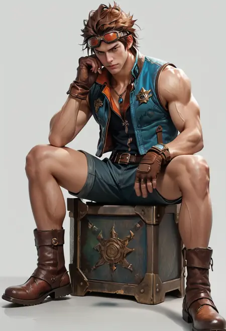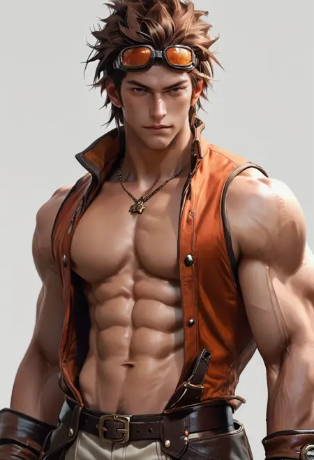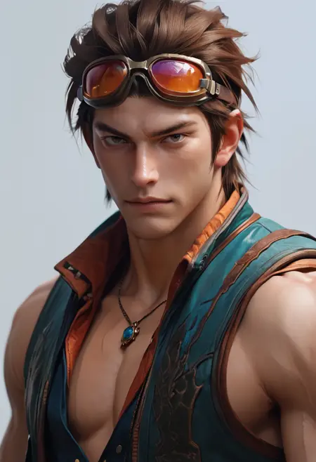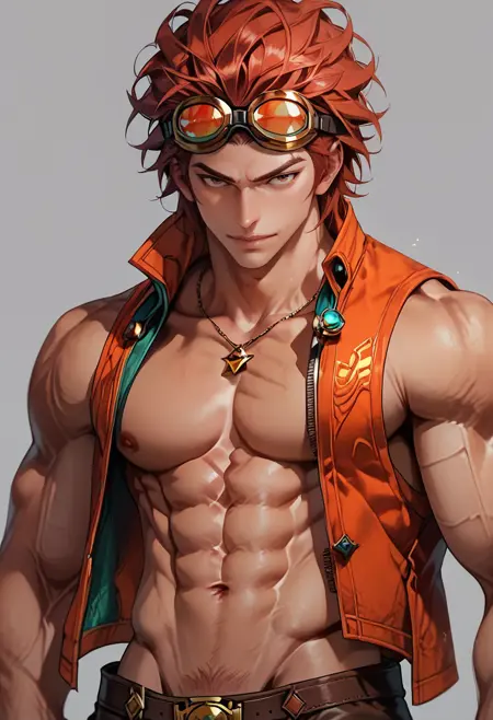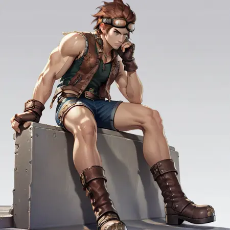 hwrng_cc, 护目镜, 红发, 无袖, 牛仔裤