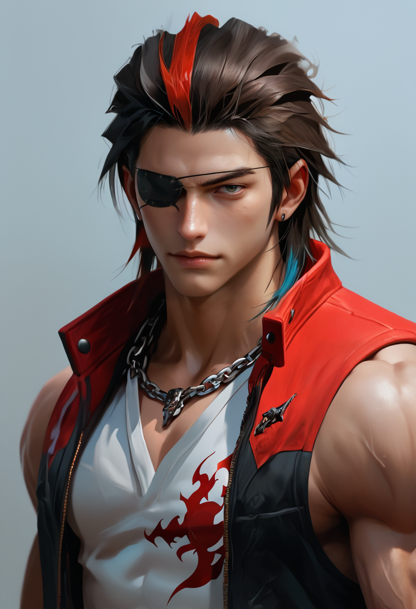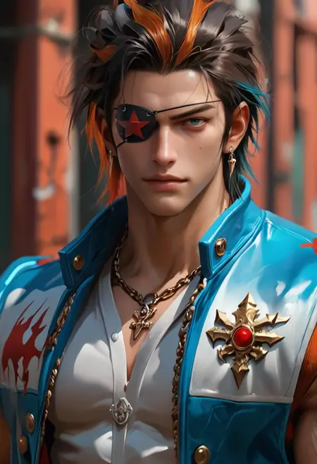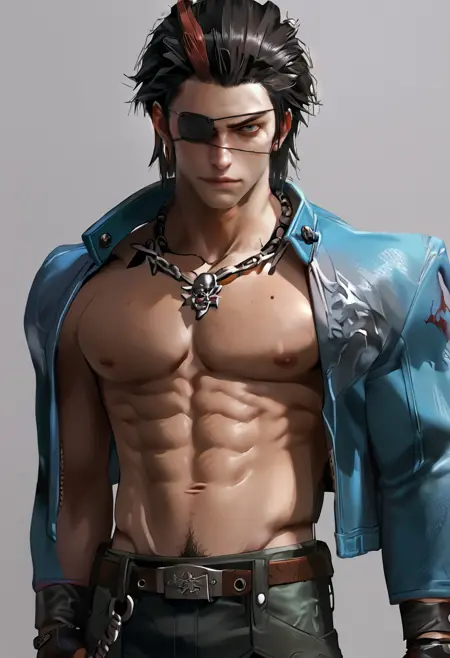 hwrng_t7, 眼罩, 多彩头发, 链条项链, 夹克, 衬衫