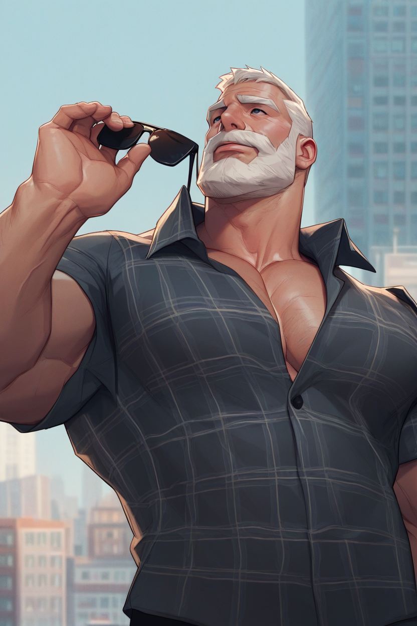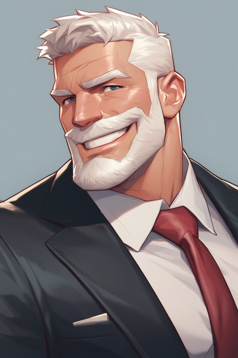 Ulric:キャラクター:Ulric Silver、1人の老年男性、短い白髪、白いひげ、白い眉、濃い青い目