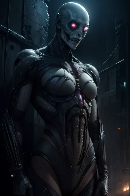 Dark theme enhances light and shadow effects, with clear contrast between light and dark