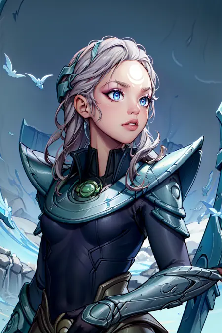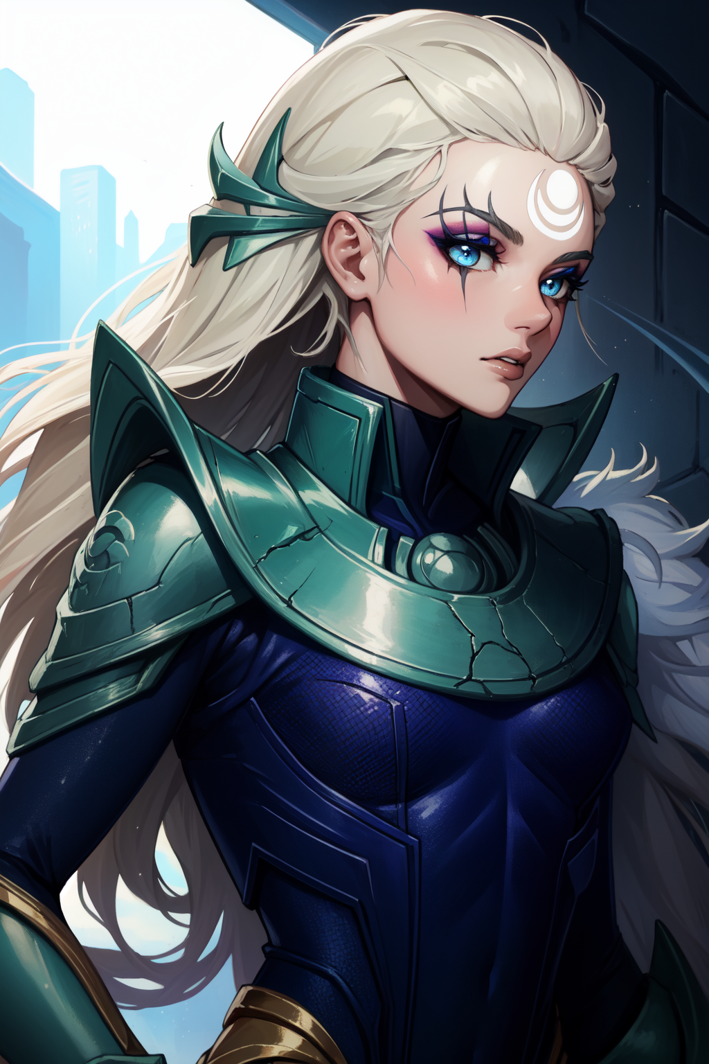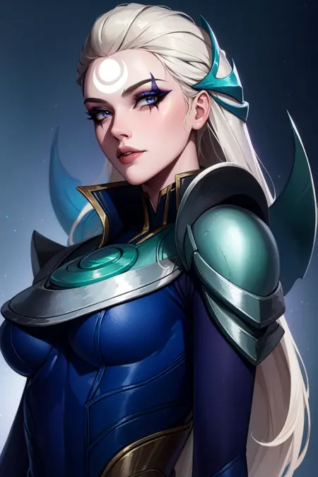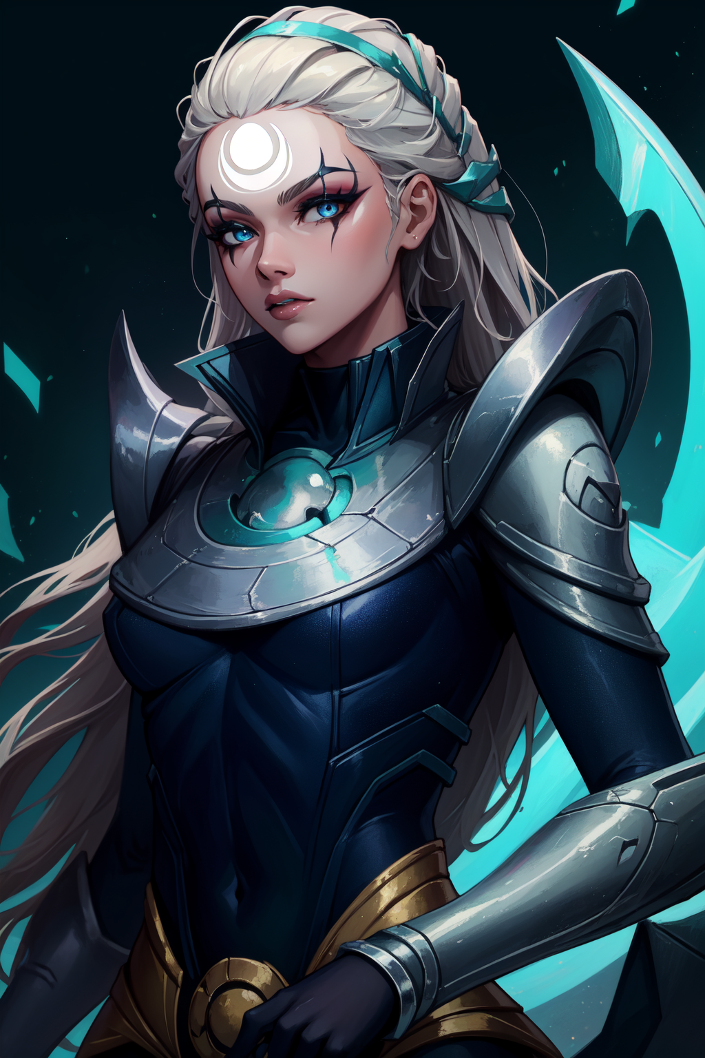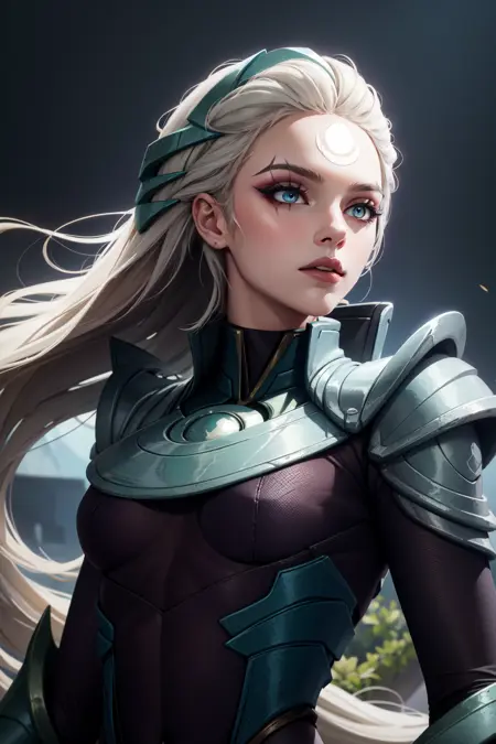 デフォルトのダイアナ:diana \(league of legends\), 1girl, bodysuit, armor, makeup