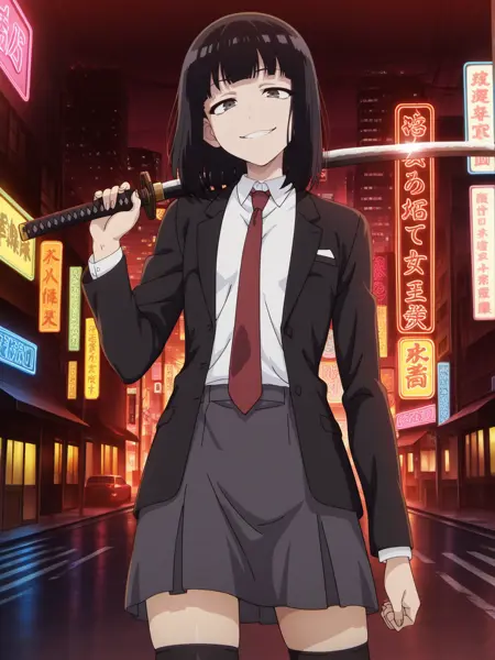 프롬프트에 'jacket'과 'zipper'를 입력하면 애니메이션의 옷차림이 생성됩니다.