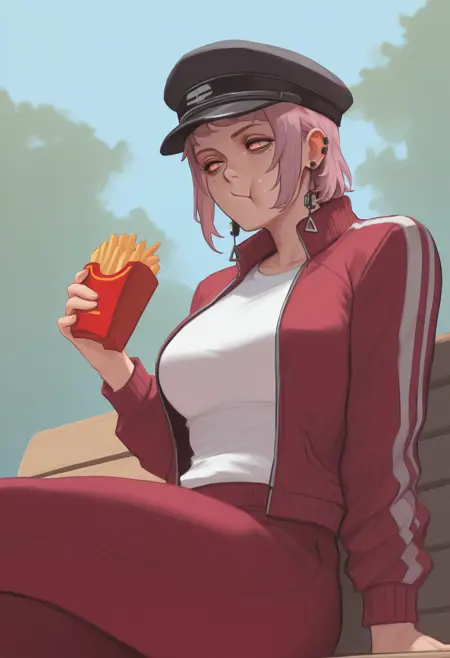 トリガー+外見: f4mi, 多数のほくろ, 目の下のほくろ, 口の下のほくろ, 耳 piercing, 短髪, ピンクの髪, ピンクの目, 環状の目