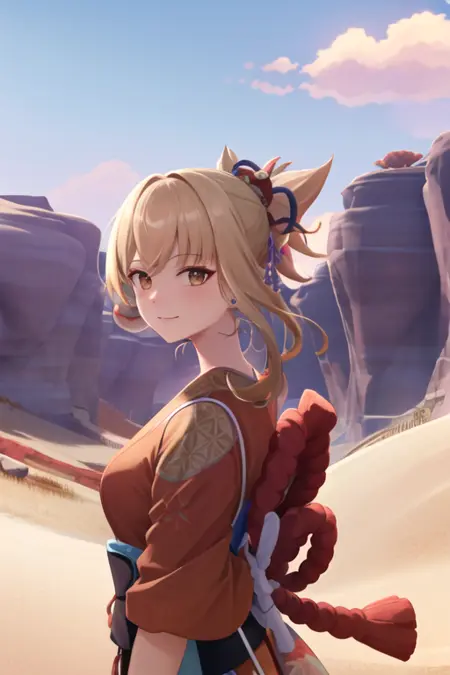 私が公開にまで自信を持てるようになった初めてのLoRAです。原神の768x768のスクリーンショットをもとに学習させました。地域ごとの風景(モンドスタット、リュウイ、イナズマ、ドラゴンスピネ、シュメール砂漠、シュメールジャングル)を生成できます。キャラクター用LoRAと組み合わせることで、本物らしさのある背景を提供できます。例えば、ヨミヤがシュメール砂漠を訪れた場合を想像してみてください。