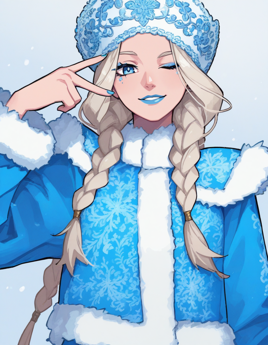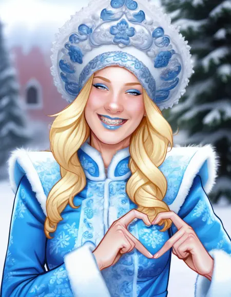 “Snegurochka(Снегурочка),或称‘雪姑娘’,是俄罗斯民间传说和神话中的人物,常与冬季、雪和新年相关联。她的名字在英语中意为‘雪姑娘’或‘雪之少女’。她是俄罗斯文化中深受喜爱的角色,出现在童话、民间传说以及现代的新年庆祝活动中。