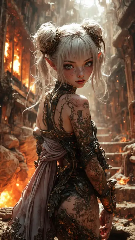 该模型可用于创建短发、带有朋克风格发型和妆容的半魅魔。