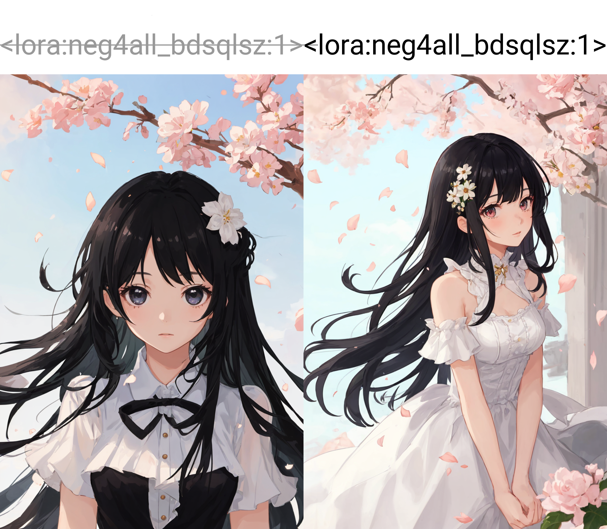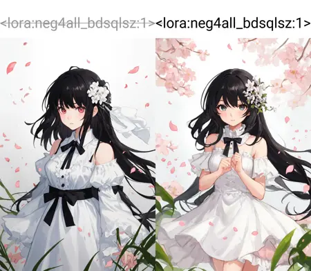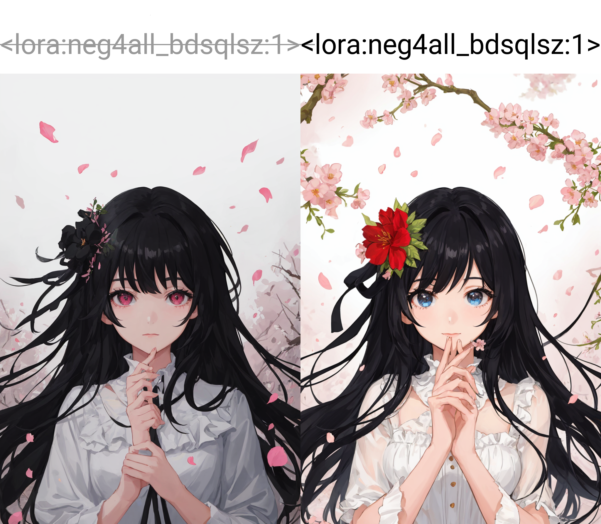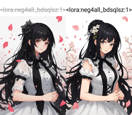 正向:1girl,black hair,hair_flower,petals,lora:neg4all\_bdsqlsz\_V3.5:1